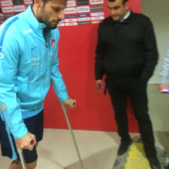 Maç sonu stadı koltuk değnekleriyle terkeden Hakan Balta'nın durumuyla ilgili Milli Takım resmi Twitter hesabından bir açıklama yapıldı.