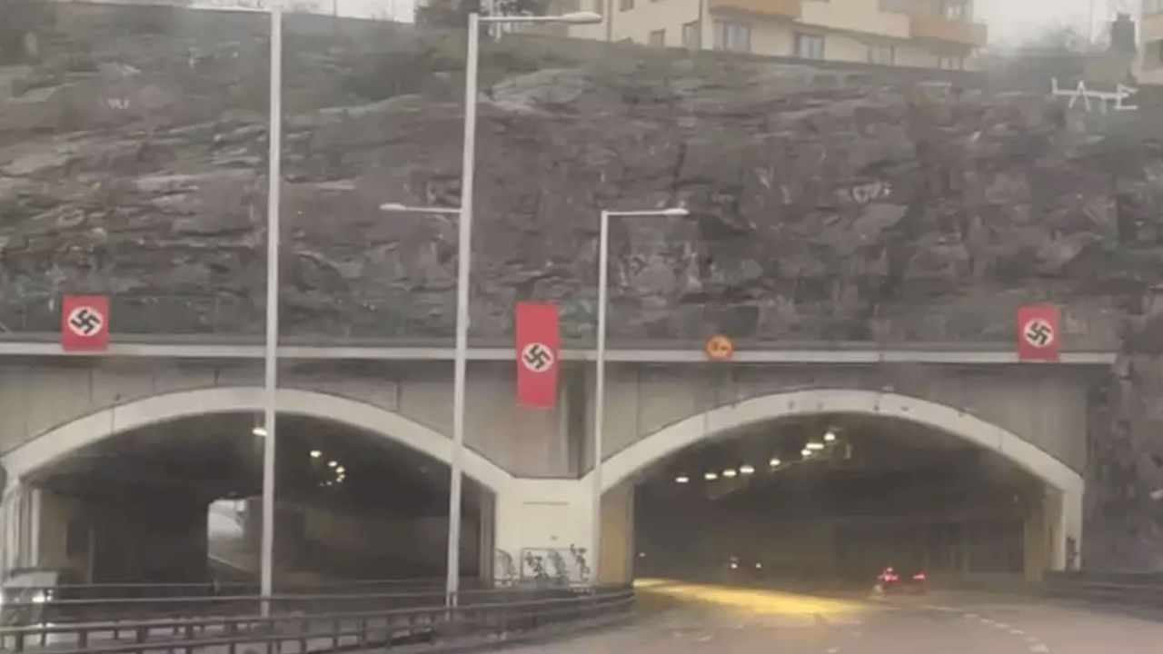 İsveç'in başkenti Stockholm'ün Essingeleden bölgesindeki otoyol girişine, Adolf Hitler'in doğum günü 20 Nisan'da üzerinde gamalı haç bulunan 3 Nazi bayrağı asıldı. Bayrakları görenler polise şikayet yağdırdı.