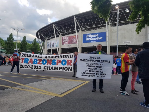 Bunun üzerine stat çevresindeki Fenerbahçeliler, pankart açan Trabzonspor taraftarına tepki gösterip " Burası milli maç! Neden burada bunu yapıyorsunuz" diye bağırarak bu grubun üzerine yürüdü. Tansiyonun yükseldiği anda İsviçre polisi araya girerek olayın kavga boyutuna geçmesini engelledi.