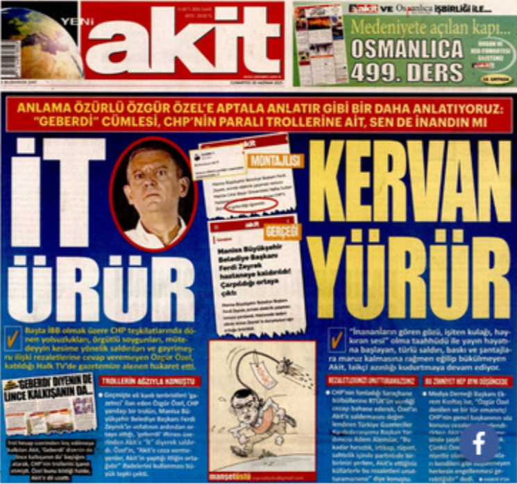 Her fırsatta Akit’e saldıran Özel’in rezil sözleri daha önce attığımız “İt ürür kervan yürür” manşetini akıllara getirdi.