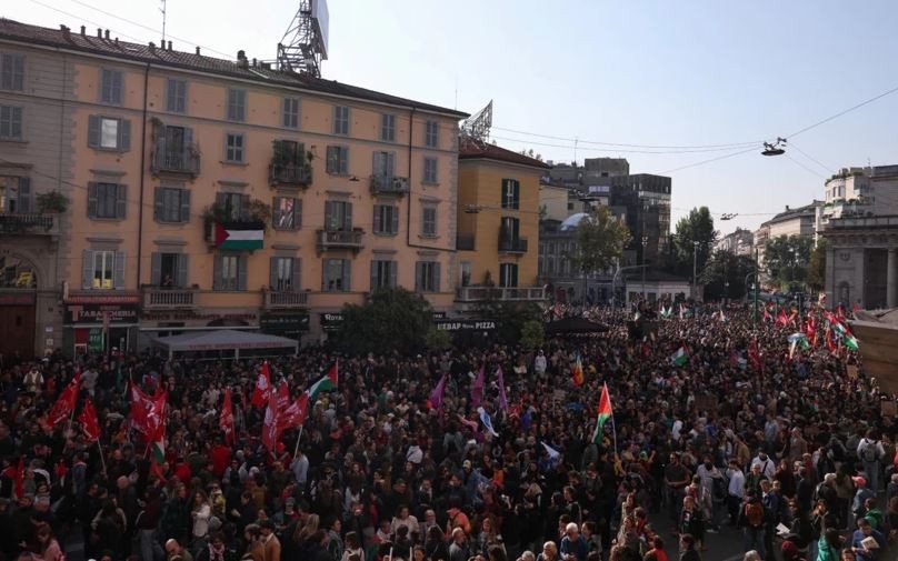 Sendikaların çağrısı ile İtalya'da on binlerce kişi, işgalci İsrail'in Gazze'ye yardım taşıyan Küresel Sumud Filosu'na yasadışı müdahalesini protesto etmek için bugün sokaklara döküldü.