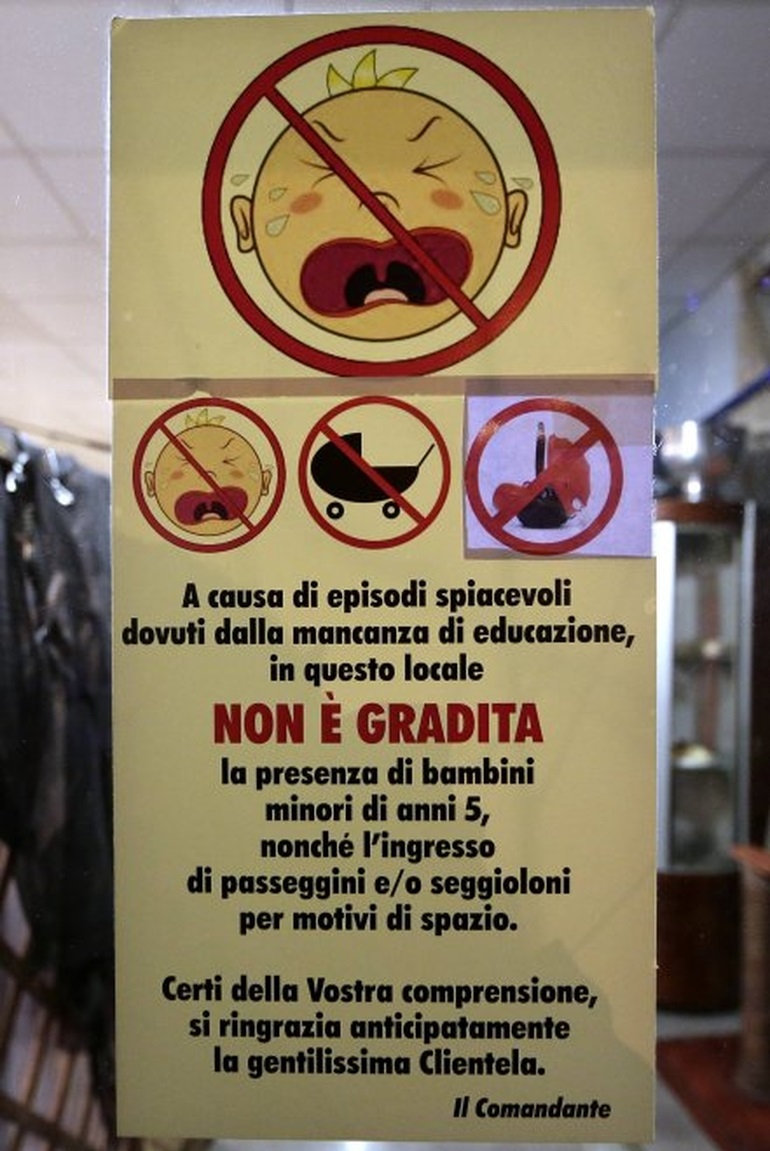 İtalya'da 5 yaşından küçük çocukların restoranlara alınmamasını içeren uygulama hızla yayılıyor. Restoranlara her türlü puset ve bebek arabası da sokulamayacak.
