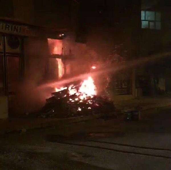 Nusaybin ilçesinde İsmail Irmak Bulvarı'nda bulunan ekmek fırınının önüne yığılan odunlar dün gece belirlenemeyen bir nedenle tutuşunca yangın çıktı.