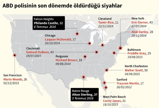 ABD'nin Louisiana eyaletine bağlı Baton Rouge'da Salı günü Alton Sterling adlı bir siyah polis tarafından vurularak öldürülmüştü. Sterling'in ölümünden bir gün sonra Minnesotaeyaletine bağlı St. Paul'de yine başka bir siyah Philando Castile trafik ışıklarında arabanın içindeyken polisin dışarıdan ateş etmesi sonucu ölmüştü.