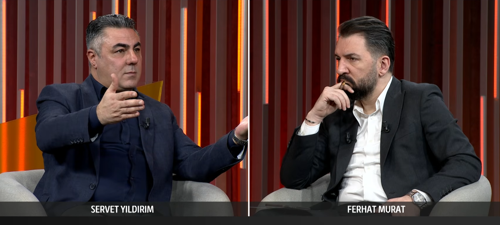 Murat’ın CHP Genel Başkanı Özgür Özel tarafından iftiracı denmesine ilişkin ne düşündüğü sorusuna yönelik konuşan Yıldırım, "Ben hırsıza hırsız demişim suçlu olmuşum. Bir daha televizyona, medyaya eğer iftiracı kelimesiyle çıkıp Servet Yıldırım hariç demezse onun yol yürüdüğü arkadaşları sokağa çıkamaz hale getiririm. Bildiğim şeylerden dolayı yaparım. Onları sokacağa çıkılamayacak hale getiririm. Adem Soytekin’in çakarı kimin üstünedir? Turan Taşkın Özer’in üzerinedir. Bizimki kimin üzerinedir; Özgür Karabat’ın üstünedir" ifadelerini kullandı.