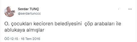 İYİ Parti Ankara İl Başkan Adayı olan Serdar Tunç'un 15 Temmuz gecesi hain FETÖ'cülere destek veren tweetler attığı, Cumhurbaşkanı'na ve annesine hakaretler yağdırdığı paylaşımlar ortaya çıktı.