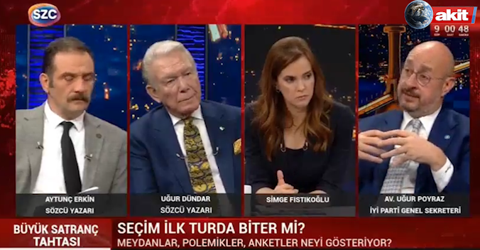 İYİ Parti Genel Sekreteri Av. Uğur Poyraz Sözcü TV'de Simge Fıstıkoğlu moderatörlüğünde yayınlana Büyük Satranç Tahtası programında Sözcü yazarları Uğur Dündar ve Aytunç Erkin'in sorularını yanıtladı.