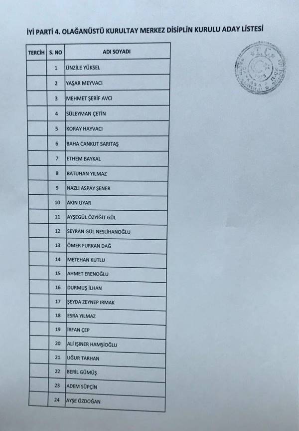 İYİ Parti Genel Başkanı Meral Akşener, Merkez Disiplin Kurulu(MDK) için liste verdi.