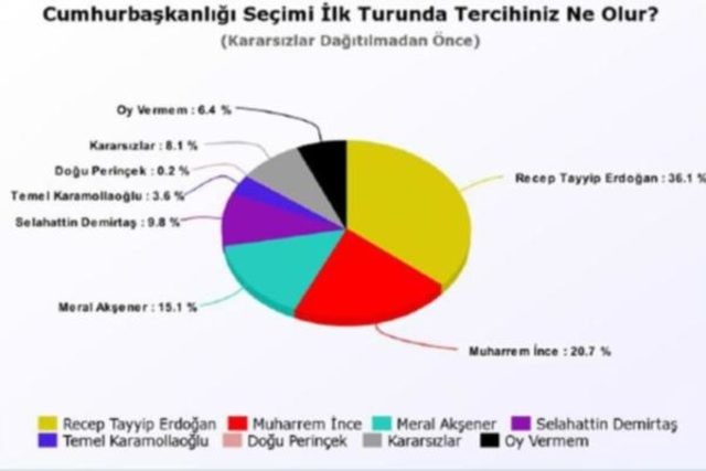 Seçmenlere cumhurbaşkanlığı seçiminde ilk turda kimi destekleyeceksiniz sorusu da yöneltildi. Buna göre kararsızlar dağıtılmadan önce sonuçlar şöyle: