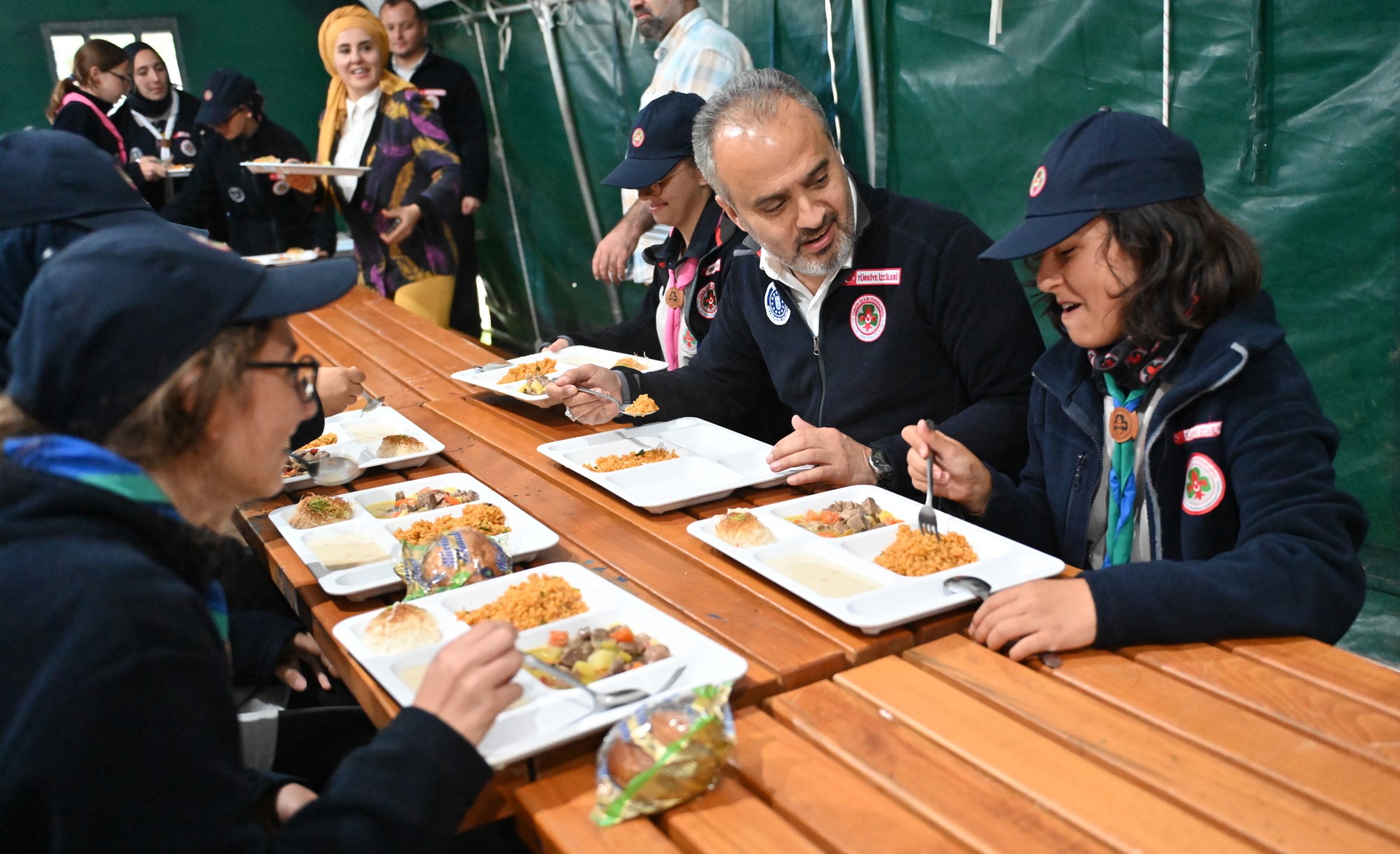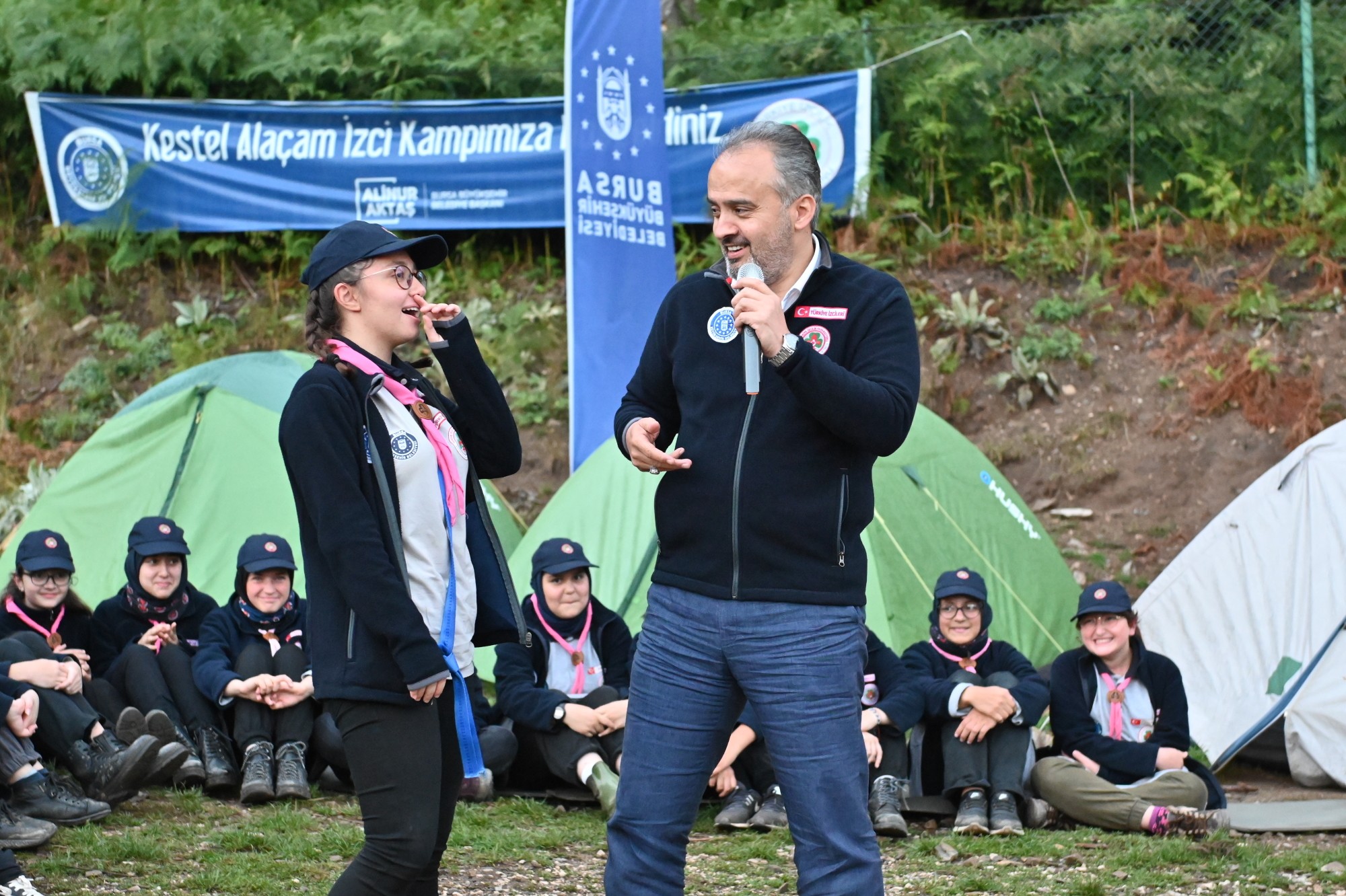 Gemlik Karacaali Gençlik Kampı’nda 12-13 ve 14-15 yaş kategorilerinde bu yıl 14 dönemde yaklaşık 3300 genci misafir ettiklerini kaydeden Başkan Aktaş, “Kestel Alaçam Kampı’mızda da genç izcilerimiz, Uludağ’ın eteklerinde eşsiz doğa manzarası eşliğinde kamplarını yapıyorlar. İzcilik kampına katılan gençlerin sorumluluk bilincinin daha çok arttığını ve aileleriyle de daha uyumlu iletişim kurduklarını görüyoruz. Kamp yapmış olan çocuklarımızın bundan sonraki süreçte daha disiplinli, ailesiyle çok daha uyumlu hal ve tavır içerisinde olduğunu görmek bizi ziyadesiyle mutlu ediyor. Tüm yavrularımıza güzel bir gelecek temenni ediyorum. Bursa Büyükşehir Belediyesi olarak kesinlikle gençler ve gençlik bizim önceliğimizdir. Bu uğurda pek çok çalışmayı hayata geçiriyoruz. Onlara güzel bir geleceği temin etmenin, onları sanatla ve sporla geliştirmenin derdini ve heyecanını taşıyoruz” diye konuştu.