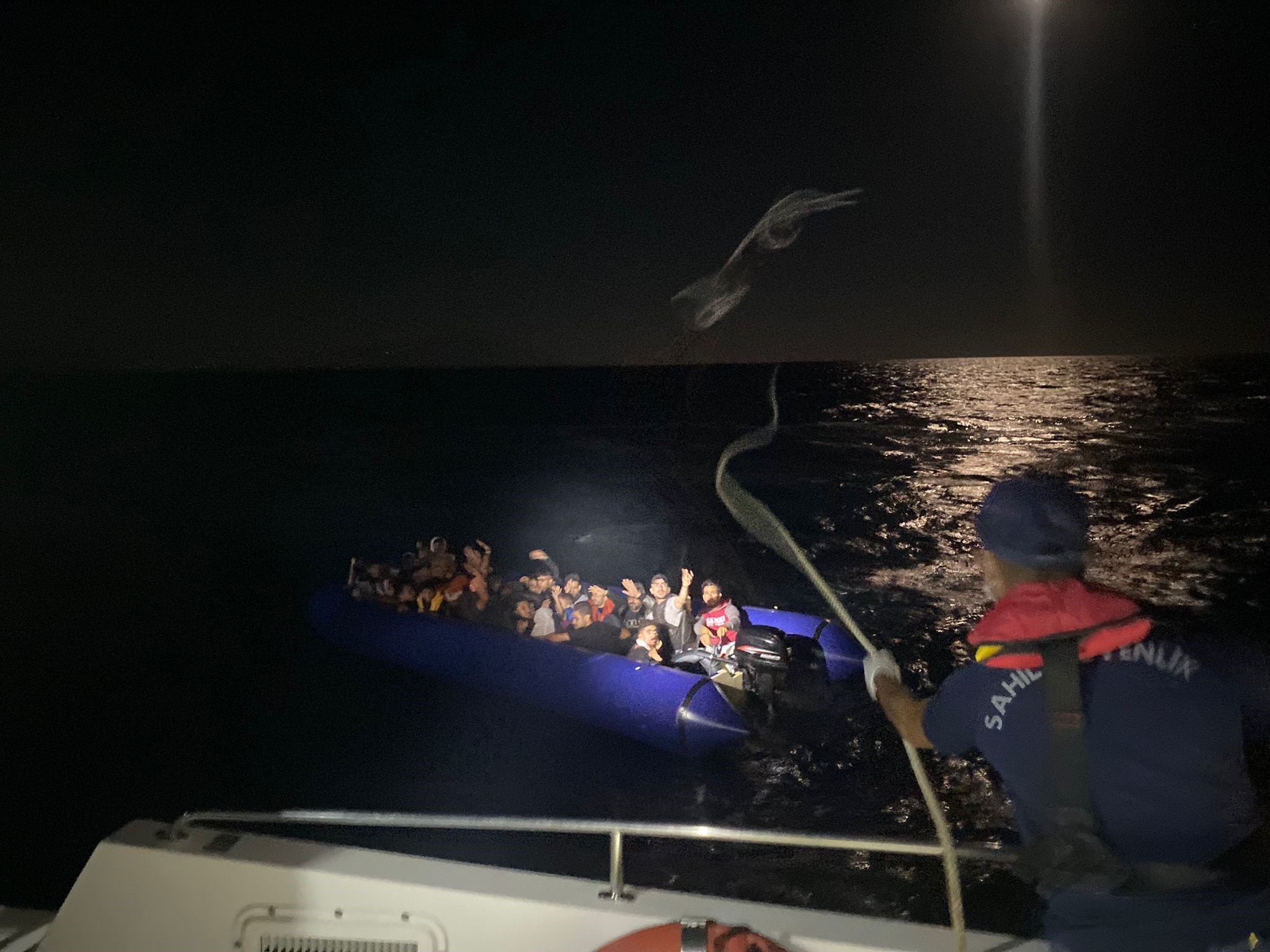 Görevlendirilen Sahil Güvenlik botu (TCSG-24) tarafından tespit edilen hareketli lastik botu durdurdu. Yasa dışı yollarla yurt dışına kaçmaya çalışan 36 düzensiz göçmen, ekipler tarafından yakalandı.