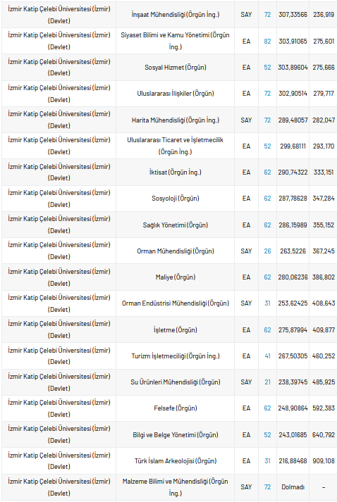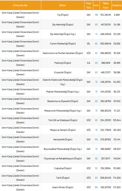 İzmir Katip Çelebi Üniversitesi 2021 taban puanları ve yüzdelik dilimleri nelerdir?