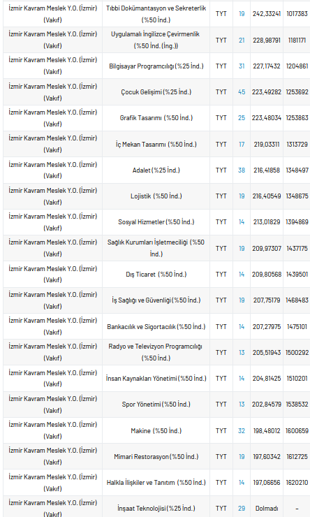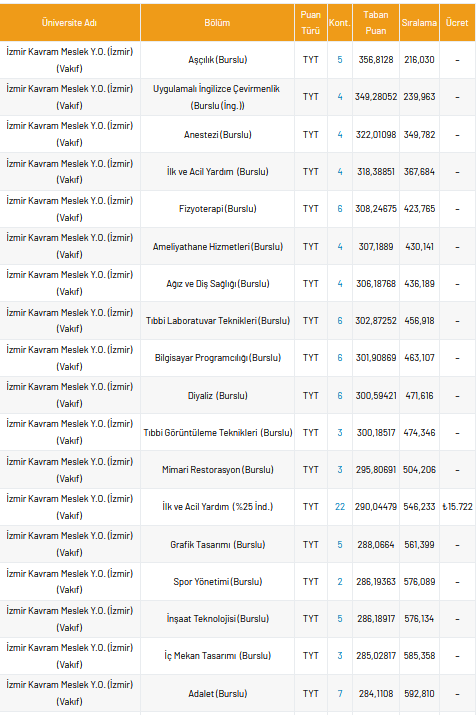 Eğitim öğretim döneminin bitmesine az bir süre kaldı. Bu nedenle öğrenciler, üniversite taban puanları ve kontenjan sayısı araştırıyor. Hedefledikleri üniversiteye girebilmek için yoğun şekilde sınava hazırlanan öğrenciler internette üniversitelerin taban puanlarını ve kontenjan sayılarını araştırıyor. Peki, İzmir Kavram Meslek Yüksekokulu taban puanı, en düşük yüzdelik, en yüksek yüzdelik ve kontenjan sayıları kaçtır?