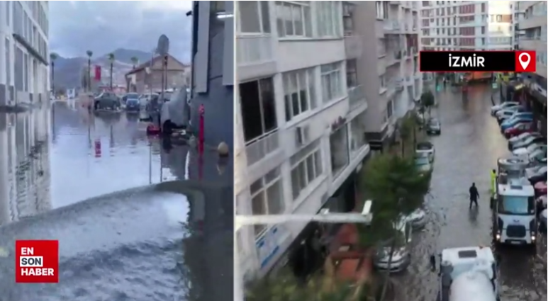 Yıllardır altyapı sorunlarıyla mücadele eden İzmir'de kent merkezini etkisi altına alan sağanak yağış sonrası caddeler göle döndü. Deniz sularının vurduğu caddelerde kısa bir süre gözüken ve açıklama yapan Soyer'in akabinde ise Polonya'ya gittiği ortaya çıktı.