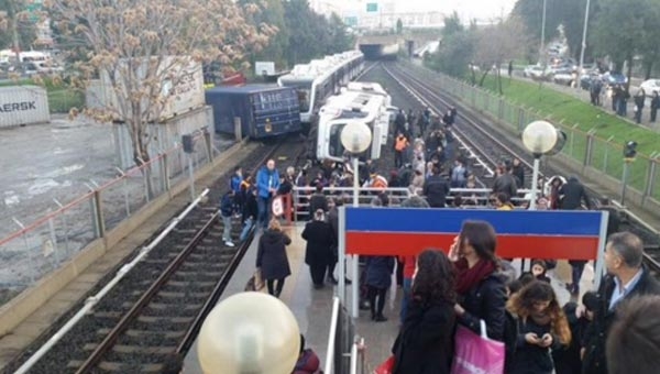 İzmir'de Bölge İstasyonu mevkiinde, yandaki depolama alanındaki yükleme sırasında raylara doğru devrilen konteyner, metro vagonuna çarptı.