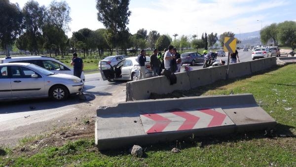 İzmir'in Bayraklı İlçesi'nde pikniğe giden aile fertlerinin içinde bulunduğu otomobil, yol kenarındaki beton bariyere çarptı. Yola savrulan otomobilde bulunan anne ile kızı yaralandı.