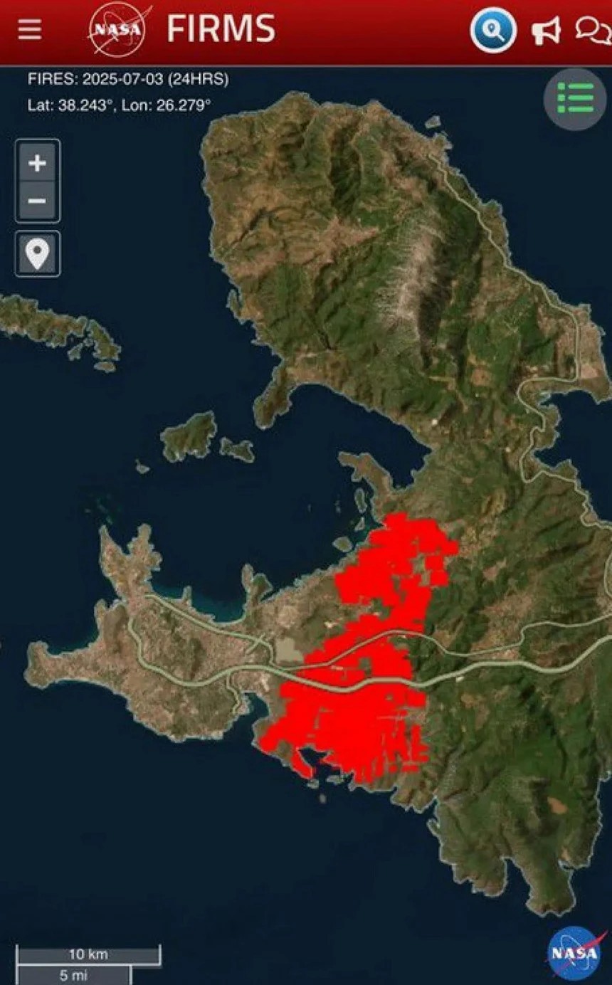 İzmir'in birçok bölgesinde çıkan orman yangını, hızla büyüyerek yerleşim yerlerini tehdit etmeye başladı. Meydana gelen orman yangınları NASA tarafından görüntülendi.
