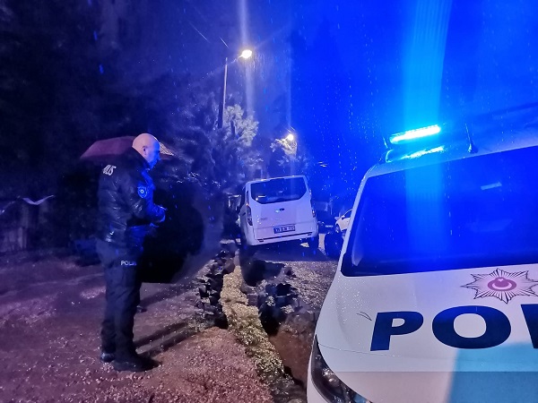 Meteoroloji Genel Müdürlüğünün İzmir merkez ve ilçeleri için yapmış olduğu sağanak yağış ikazının ardından gece saatlerinde il genelinde kuvvetli yağış etkili oldu. Narlıdere ilçesinde şiddetli yağışlardan dolayı birçok cadde ve sokak göle dönerken, 9 Eylül Caddesi’nde kısa bir süre önce altyapı çalışması yapılan yolun bir kısmı çöktü. O esnada yolda seyir halinde olan polis aracının da bir kısmı çöken yolun içerisinde düştü. Polis ekipleri el birliğiyle çöken aracı bulunduğu yerden çıkarmak için mücadele ederken, aynı zamanda park halindeki aracının lastiği çukura denk gelen bir vatandaş da kendi imkanlarıyla aracını bulunduğu yerden çıkardı.