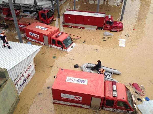 Sel suları nedeniyle mahsur kalan bazı vatandaşlar, kepçelerin yardımıyla kurtarıldı.