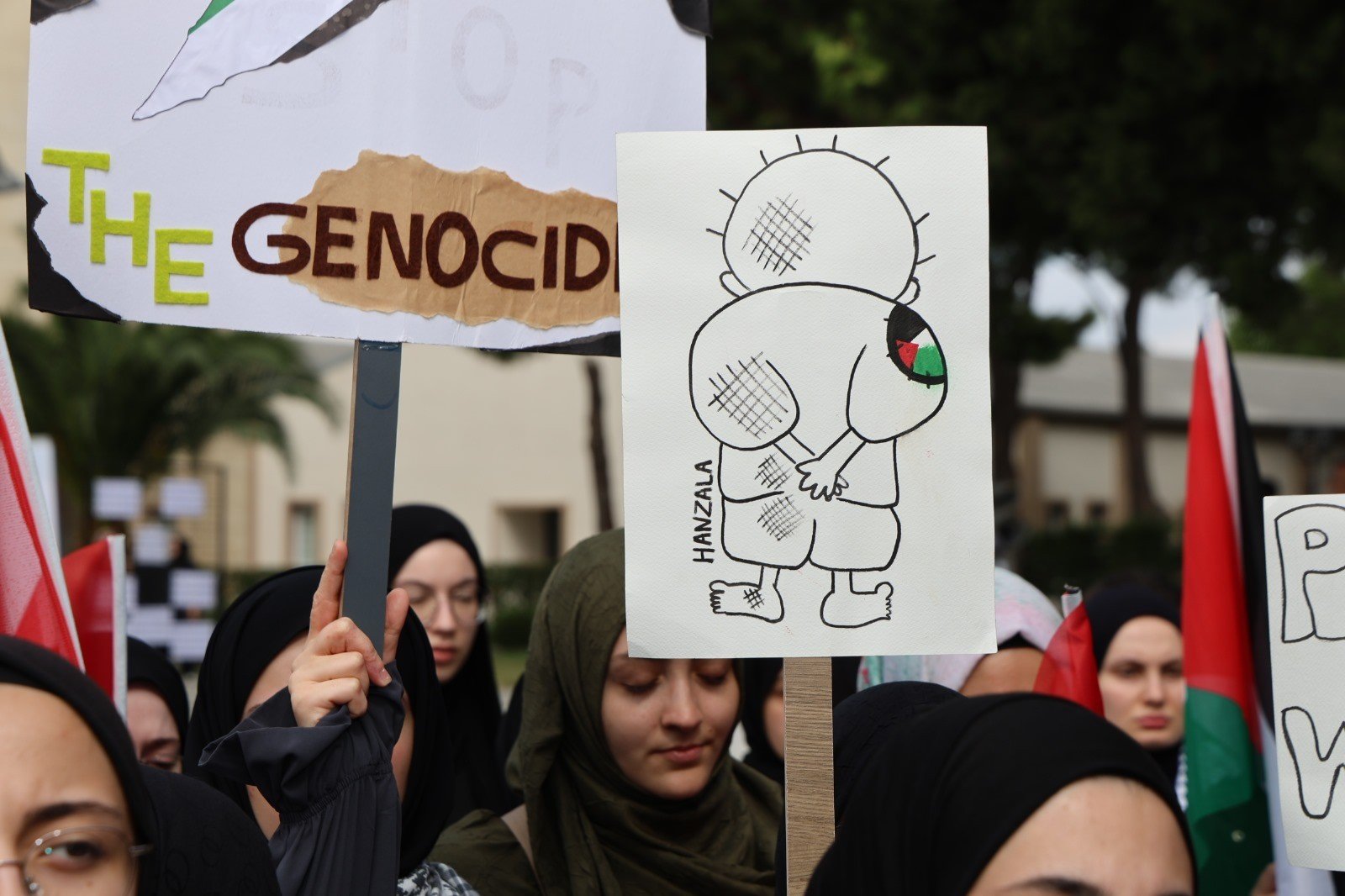 İsrail’in geçtiğimiz yılın Ekim ayında Gazze’de başlattığı ve son dönemde Lübnan’a saldırarak genişlettiği saldırıların birinci yıldönümünde tüm dünyada protesto yürüyüşleri düzenleniyor. İstanbul Sabahattin Zaim Üniversitesi öğrencileri de Üniversitenin Halkalı Kampüsünde bir araya gelerek İsrail’in zulmünü kınadı. “Direnişten Dirilişe Yeniden İntifada” adlı etkinliğe; Ahdimiz Kudüs Platformu, Acil Yardım Kulübü, Doğal Çehre Kulübü, Genç Vizyon Kulübü, Güzel İşler Kulübü, Hukuk Kulübü, İSAR Kulübü, İslam Ekonomisi ve Finans Kulübü, İslami İlimler Kulübü, Mehmet Akif Edebiyat Kulübü, Mili Gençlik Kulübü, Öncü Kuşak Kulübü, Rehber Gençlik Kulübü, Yedi Hilal Kulübü ve Yeni Nesil Öğrenci Kulübü öğrencileri katıldı. İZÜ Rektörü Prof. Dr. Ahmet Cevat Acar, Rektör Yardımcıları Prof. Dr. İsmail Küçük ve Prof. Dr. İbrahim Güney, Genel Sekreter Dr. Hızır Tutan ile pek çok daire başkanı ve akademisyenin de öğrencilerle birlikte yürüdüğü etkinliğin sonunda bir basın açıklaması yapıldı. Açıklamada, İsrail’in saldırıların Filistin’i kan gölüne çevirdiği ifade edildi. İsrail’in yaşlı, çocuk, kadın demeden, hastane, okul, konut ayırt etmeden her yeri hedef aldığının hatırlatıldığı açıklamada, İsrail zulmünün durması için dünya kamuoyunun bir araya gelmesi gerektiği kaydedildi. Batılı ülkelerin hızlıca İsrail'in yanında yer aldığının belirtildiği açıklamada, başta üniversite kampüsleri olmak üzere gençliğin zulme karşı tek ses olması gerektiği kaydedildi.