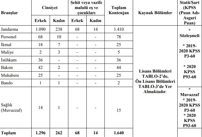 Yayımlanan kılavuzda "Jandarma Genel Komutanlığı Karargâhı ile bağlısı birlik ve kurumlarda istihdam edilmek üzere Jandarma ve Sahil Güvenlik Akademisi Başkanlığına aşağıda belirtilen branşlarda muvazzaf/sözleşmeli erkek ve kadın astsubay temini yapılacaktır" ifadeleri yer aldı.