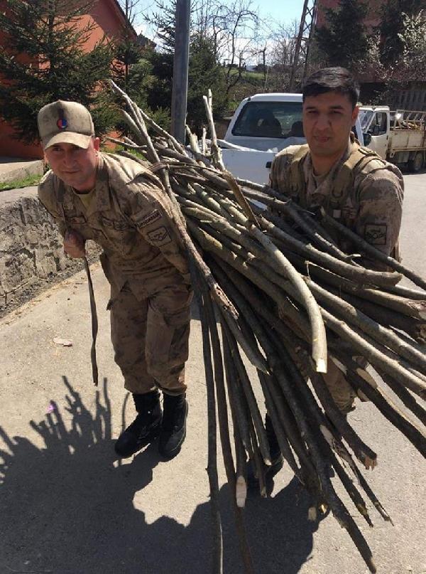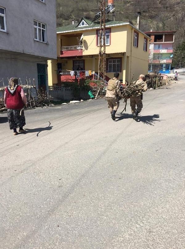 Ordu'nun Aybastı ilçesi Fatih Mahallesi’nde devriye görevi yapan jandarma ekipleri, sırtında odun taşıyan yaşlı kadını fark etti. Bir jandarma, kadının sırtındaki odunları alıp, sırtladı. Jandarma, yanındaki arkadaşıyla birlikte odunları, kadının evine kadar taşıdı.