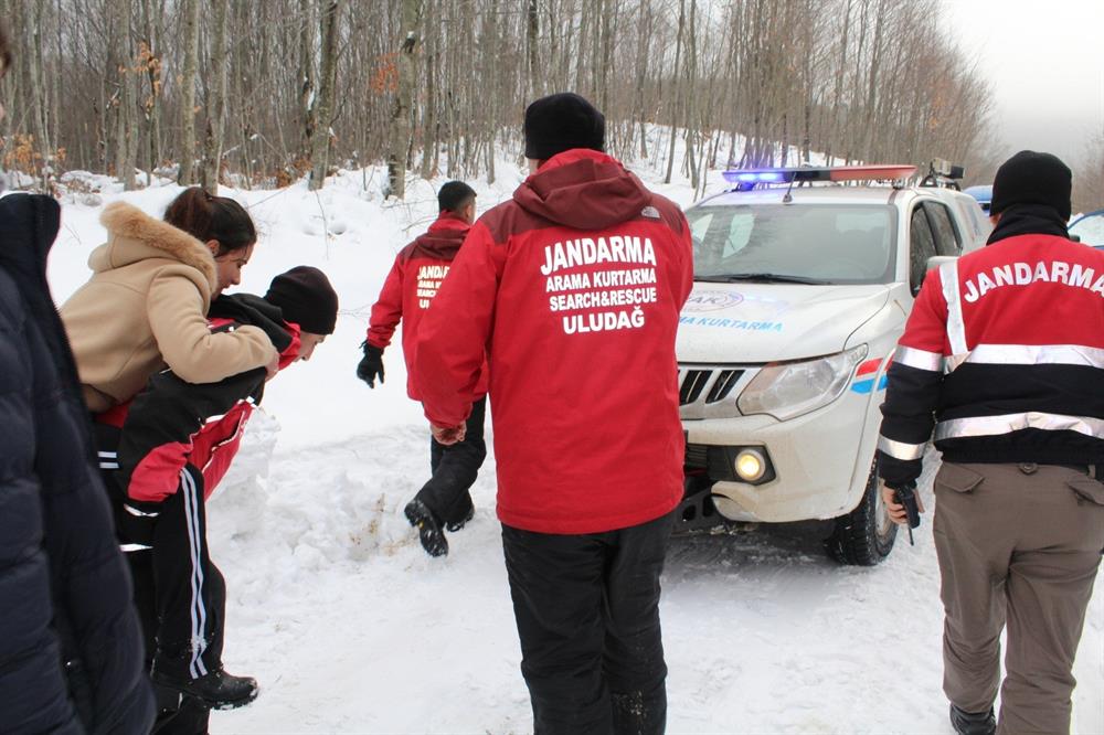 Uludağ'ın eteklerindeki Süleymaniye Mahallesi'nde şehir merkezine inmek isteyen 6 kişi, 1 metreyi aşan karda mahsur kalınca, jandarmanın yaptığı operasyonla donmaktan kurtarıldı. Yaklaşık 15 kilometre yürüyen ekipler, soğuktan dolayı yürüyemeyen bir kişiyi de sırtlarında taşıdı.