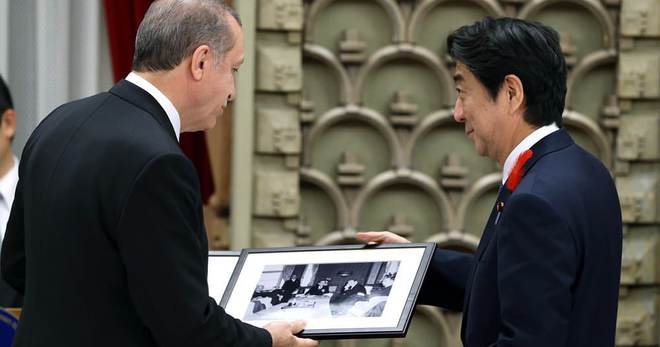 Japon Başbakan Cumhurbaşkanı Erdoğan'ı duygulandırdı. Abe, dedesinin başbakan olduğu dönemde, merhum Başbakan Adnan Menderes'in Japonya ziyaretine ait bir fotoğrafı Erdoğan'a hediye etti.