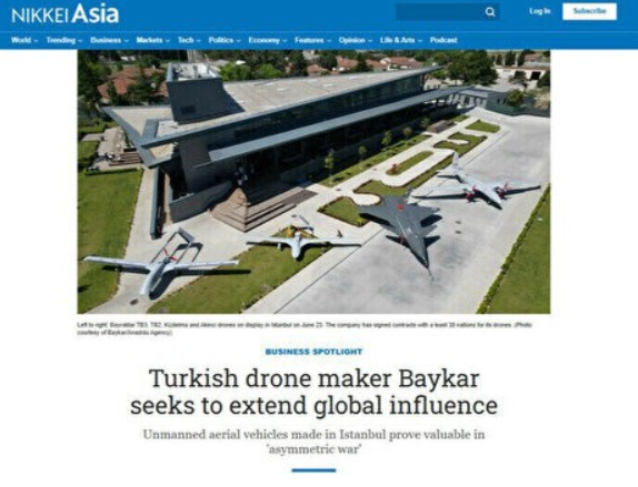 Japonya'nın önde gelen gazetelerinden Nikkei Türk, Türk İHA ve SİHA’larını övgüyle anlatarak "İnsansız hava araçları asimetrik savaşta değerli olduğunu kanıtladı" ifadelerini kullandı.