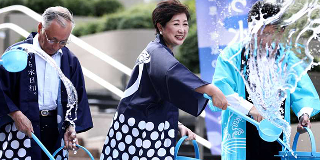 Dünya genelinde mevsim normallerinin çok üzerinde hissedilen sıcak havalar, insanları yeni çözümler üretmeye itiyor. Japonya'nın başkenti Tokyo'da termometrelerin 40 dereceyi göstermesiyle birlikte halk serinlemek amacıyla su parklarına koştu. Havuza gitmeyen Japonlar ise, sıcak havanın zararlı etkilerinden korunmak için şemsiye kullanarak yürümeye başladılar. Güneşin altında şemsiyeyle yürüyen insanlar, Tokyo sokaklarında oldukça renkli görüntülere sebep oldular. ,