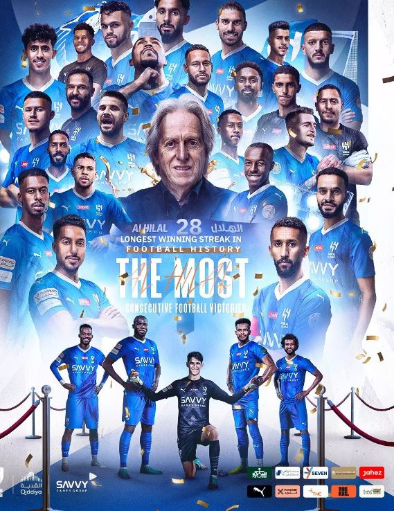 Jorge Jesus'un teknik direktörlüğünü yaptığı Suudi Arabistan ekibi Al Hilal, 28 maç üst üste galip gelerek futbol tarihinde en uzun galibiyet serisine ulaştı.