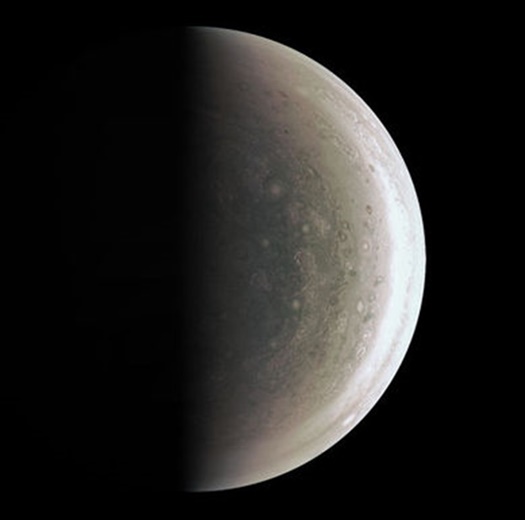 Jüpiter'den şimdiye kadar alınan en yakın görüntüleri değerlendiren ABD'nin Texas eyaletine bağlı San Antonio şehrindeki Güneybatı Araştırmaları Enstitüsü'nden bilim adamı Scott Bolton, Jüpiter'in kuzey kutup dairesinin beklenenden daha fırtınalı olduğunu ve gezegenin geri kalanından daha mavi göründüğünü belirtti.