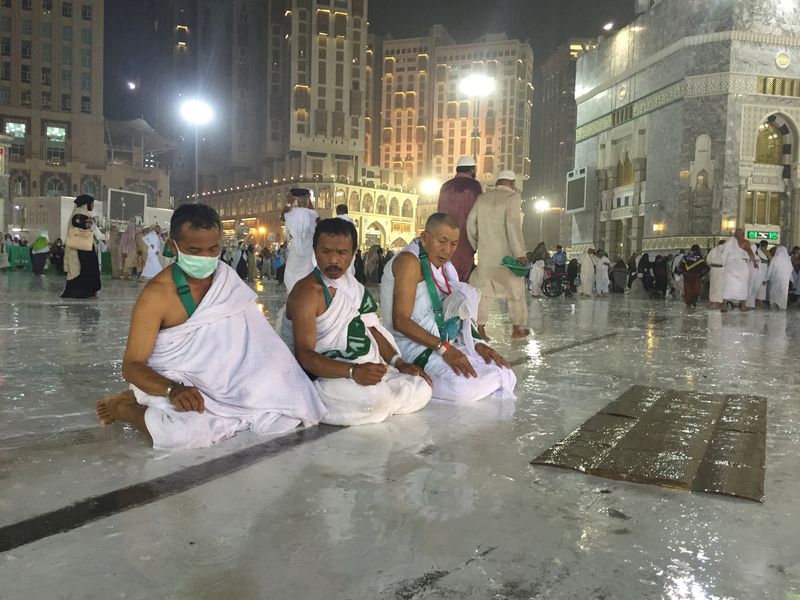 Mescid-i Haram’a ulaşmaya çalışan binlerce hacı adayı yaklaşık 10 dakika süren yağmura hazırlıksız yakalandı. Birçok hacı adayı, Kabe çevresindeki iş merkezlerine sığındı.