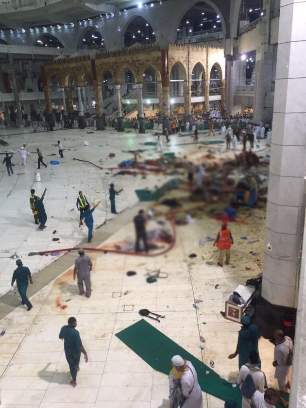 Kabe'de şiddetli yağış ve fırtına sonucu yıldırım çarptığı bir vinç hacı adaylarının üzerine düştü, olayda çok sayıda ölen ve yaralanan var.