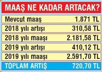 Yaklaşık 5.1 milyon kamu görevlisi ve memur emeklisinin gözü toplu sözleşmede... Konfederasyonların taleplerini inceleyen Kamu İşveren Heyeti'nin 14 Ağustos'ta sunacağı zam teklifi merakla bekleniyor. Memurlar ve memur emeklileri için 3 alternatifli zam talebi hazırlayan Memur-Sen ise hükümetin yeni bir teklif sunmayıp, taleplerinden birini kabul etmesini istiyor. Memur-Sen Başkanı Ali Yalçın, tekliflerinin kümülatif olarak maaşlara yıllık en düşük yüzde 16.60, 2 yıllık yüzde 38.52 zam içerdiğini vurguluyor. Eğer Memur-Sen'in talebi kabul görürse; en düşük memur emeklisi maaşında, 2 yılda yapılacak 4 zamla toplam 720 liralık artış gerçekleşecek. Halen en düşük memur emeklisi maaşı bin 871 lira. Bu maaş 2018'de 2 ayrı zamla toplam 310 lira artışla 2 bin 181 liraya ulaşacak. 2019'da da 2 ayrı zam ile 410 liralık artış sağlanacak ve en düşük memur emeklisi maaşı 2019'da 2 bin 591 liraya çıkacak.