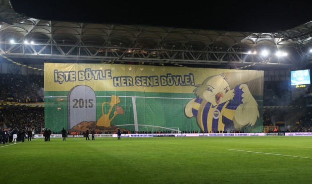 Maç başında tribünde yapılan dev pankart şovun ardından maç sonunda gelen galibiyetle Galatasaray'ın Kadıköy'de kazanamama serisinin devam etmesine atıfta bulunulan bir pankart daha açıldı. Pankartta kafası mezara girmiş bir aslan ve bir de kanarya figürü bulunuyor.