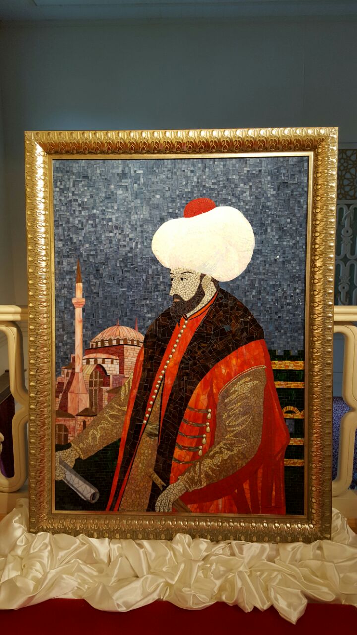 Sanatseverler tarafından oldukça ilgi gören sergide, en dikkat çekici eser olarak öne çıkan Meyçem Ezengin imzalı Fatih Sultan Mehmet Mozaiği görülmeye değer.