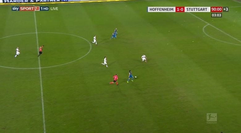 Ancak pozisyonda top Hoffenheim orta sahası Kerem Demirbay'da kaldı. Kerem de hızlı bir şekilde topla rakip yarı alana geçti. Ancak Kerem, boş kaleye vurmak yerine o sırada kural gereği ofsaytta olan Kramaric'e pas verdi. Kramaric, Suttgart'tan sadece Ascacibar'ın kendi kalesine yaın olmasından dolayı ofsayt pozisyonundaydı...