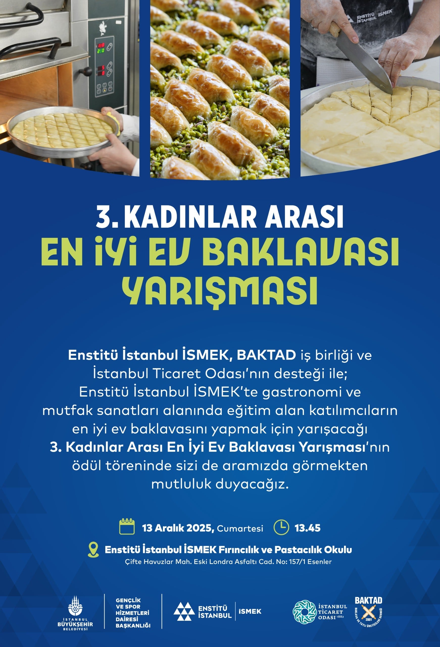 İstanbul Ticaret Odası (İTO) Baklava, Pasta ve Şekerli Mamüller Meslek Komitesi (72. Komite) tarafından düzenlenen “3. Kadınlararası Ev Baklavası Yarışması”nın finali 13 Aralık’ta gerçekleştirilecek. Yarışma, Baklava ve Tatlı Üreticileri Derneği (BAKTAD) ile Enstitü İstanbul İSMEK iş birliğinde organize ediliyor.