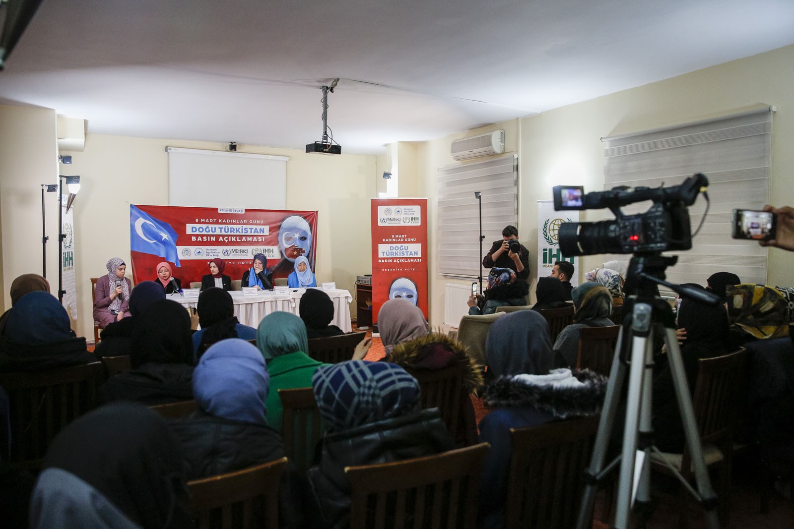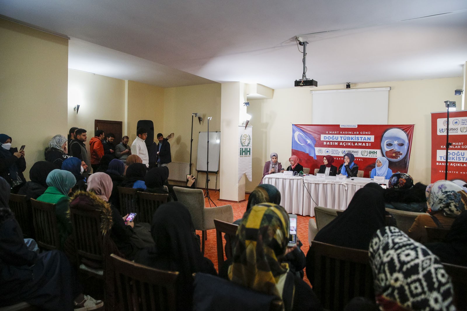İHH Kadın, Uluslararası Doğu Türkistan STK’lar Birliği, Doğu Türkistan Nuzugum Kültür ve Aile Derneği ve Uluslararası Mülteci Hakları Derneği tarafından 8 Mart Dünya Kadınlar Günü’nde Çin yönetiminin Doğu Türkistanlı kadınlara yönelik işlediği zulümleri dünyaya duyurmak amacıyla basın toplantısı düzenlendi.