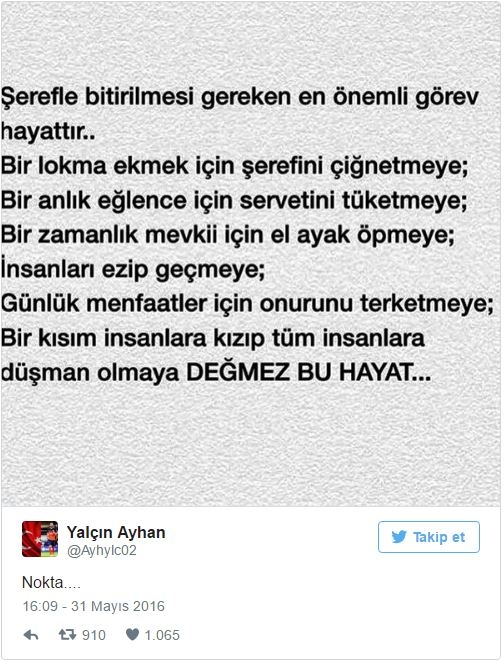 Başakşehir’in tecrübeli savunma oyuncusu Yalçın Ayhan sosyal medya hesabından imalı bir paylaşım yaptı.