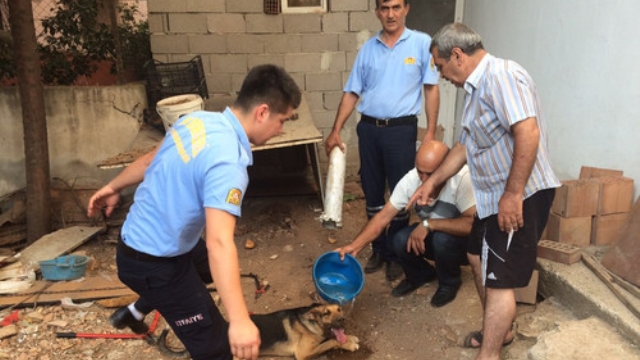 Mersin'de 'Paşa' isimli bir köpek, tuvalet borusuyla oynarken kafasını sıkıştırdı. İtfaiye yarım saatlik çalışmanın sonunda köpeği kurtarmayı başardı.