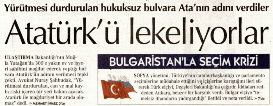 Her yere "Atatürk" ismi verilmesi gerektiğini savunan kemalistlerin yayın organı Cumhuriyet, Muğla'daki bulvara "Atatürk" ismi verilmesini eleştirdi.