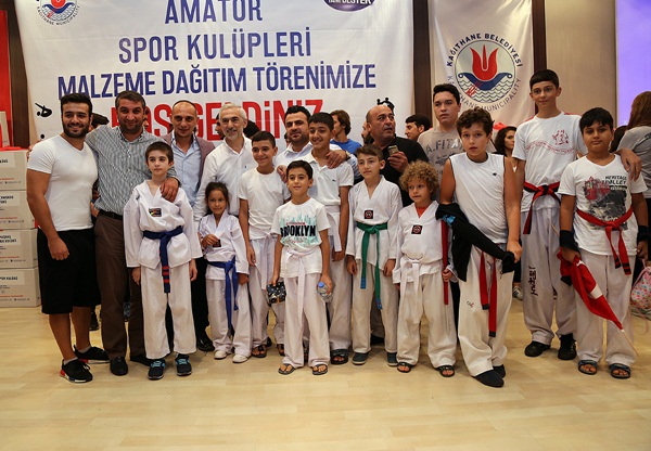 Kağıthane Belediyesi tarafından gençleri spora teşvik etmek ve malzeme sıkıntılarının giderilmesini sağlamak amacıyla amatör spor kulüplerine yönelik malzeme dağıtım töreni düzenlendi.