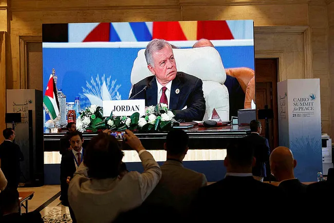 Zirvede konuşma yapan Ürdün Kralı Abdullah; "Filistinlilerin yerinden edilmesi savaş suçudur" dedi.