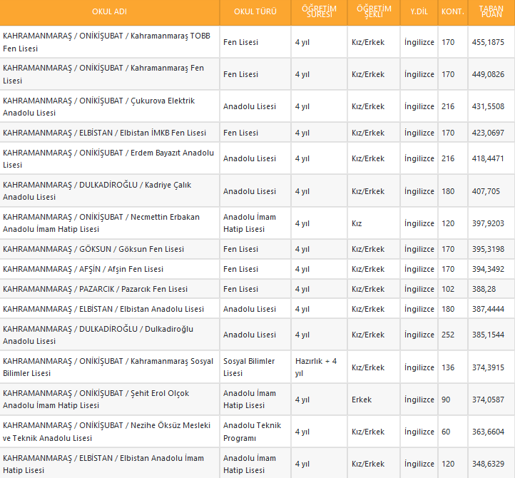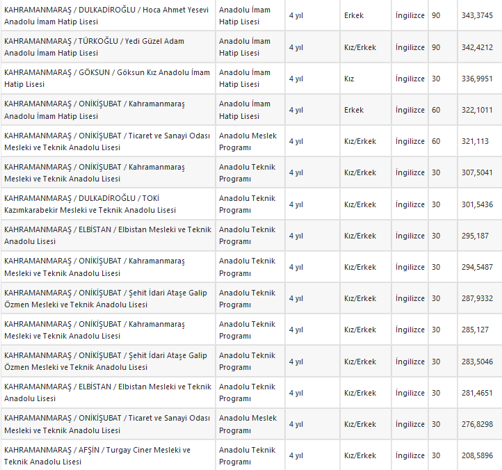 Kahramanmaraş lise taban puanları için tıklayınız...