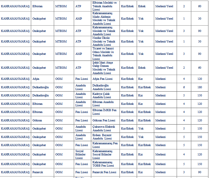 Kahramanmaraş liselerinin kontenjan kapasitesi ne kadar?