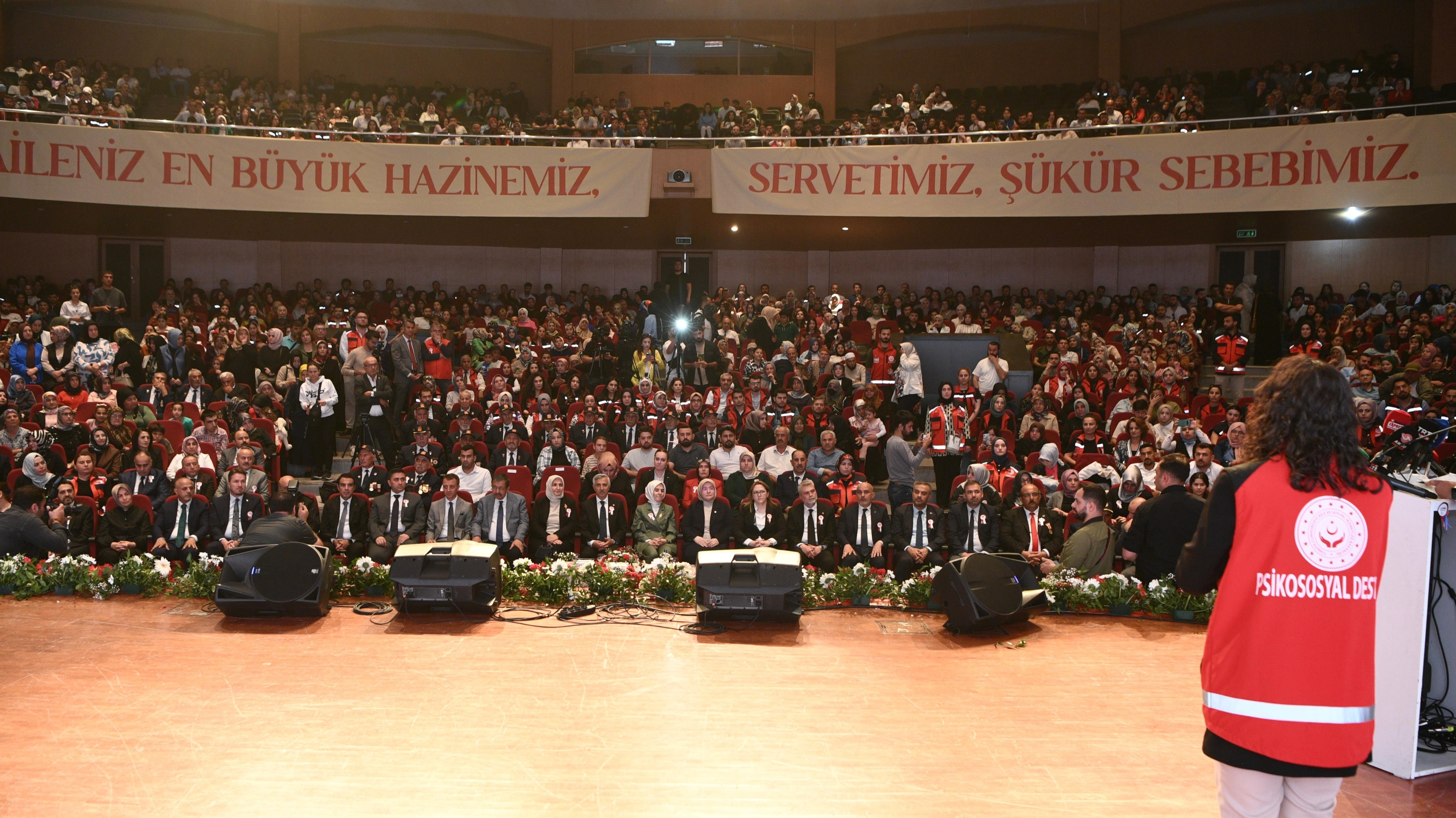 Kahramanmaraş Büyükşehir Belediyesi ile Aile ve Sosyal Hizmetler İl Müdürlüğü tarafından organize edilen 2025 Aile Yılı “Büyük Aile Buluşması”, Aile ve Sosyal Hizmetler Bakanı Mahinur Özdemir Göktaş’ın katılımıyla gerçekleştirildi. Mehmet Akif Ersoy Kültür Merkezi’nde düzenlenen programa; Vali Mükerrem Ünlüer, AK Parti Kahramanmaraş Milletvekili Tuba Köksal, Büyükşehir Belediye Başkanı Fırat Görgel, AK Parti İl Başkanı Muhammed Burak Gül, kaymakamlar, ilçe belediye başkanları, kamu kurumlarının müdürleri, sivil toplum kuruluşu temsilcileri ve çok sayıda vatandaş katıldı. Program, saygı duruşu ve İstiklal Marşı’nın okunmasıyla başladı. Ardından sahneye çıkan Aile ve Sosyal Hizmetler Bakanı Mahinur Özdemir Göktaş, güçlü aile yapısının Türkiye’nin temel değerlerinden biri olduğuna dikkat çekerek önemli mesajlar verdi.