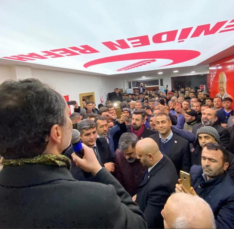 Yeniden Refah Partisi Genel Başkanı Fatih Erbakan, Kahramanmaraş'a düzenlediği ziyaret sırasında Onikişubat ilçesini ziyaret etti. Erbakan, partisinin buradaki ilçe başkanlığında, plastik bir sandalyeye çıkıp vatandaşlara hitap etti.