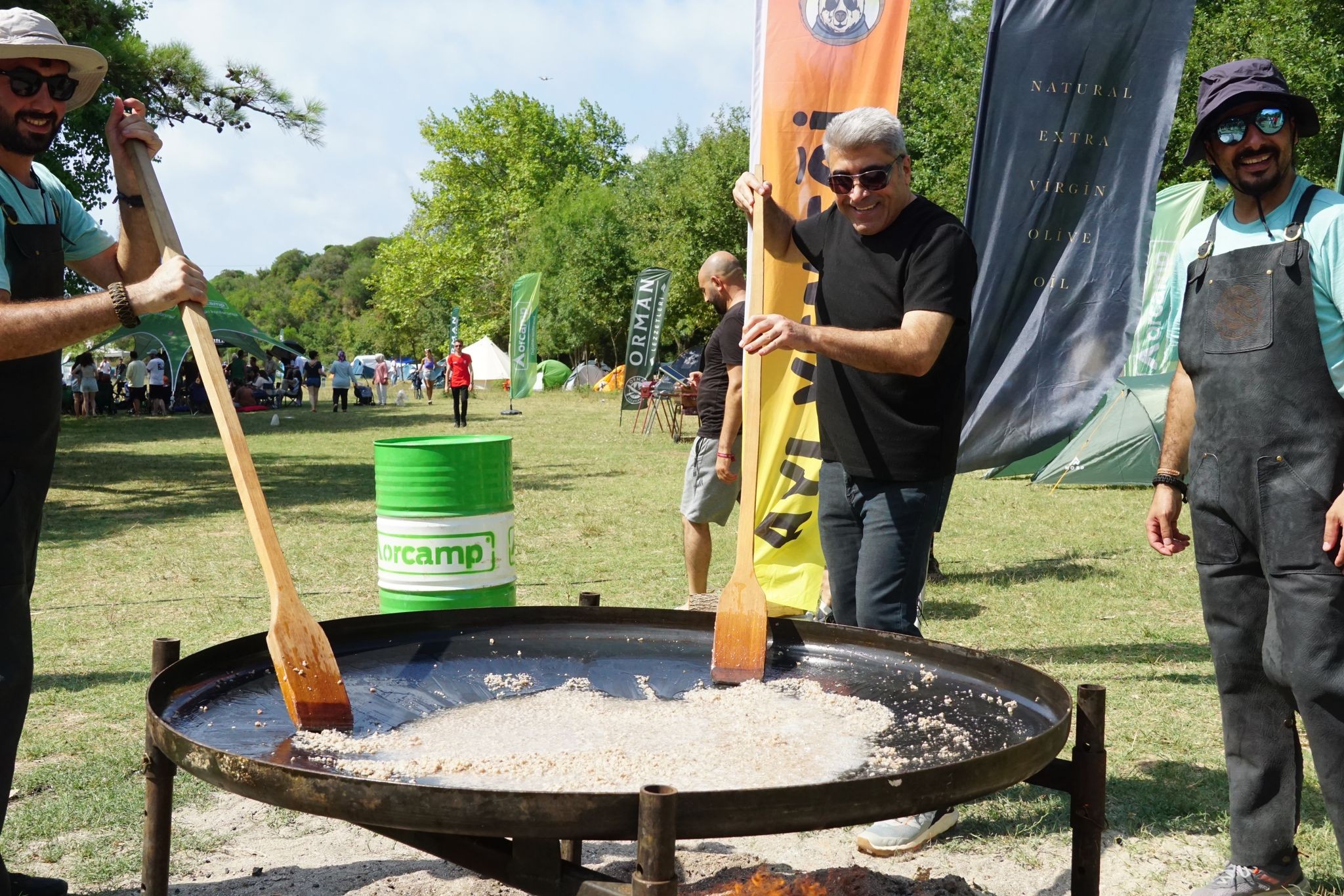 Doğada Yaşam Okulu’nda her yıl geleneksel olarak düzenen “Orcamp ile Orman Lezzetleri Kampı” yine birbirinden ilginç etkinliklere sahne oldu Geçtiğimiz yıl 150 kilo etle yapılan saç kavurması bu sene iki katına çıkarıldı. İki ayrı devasa saçta yapılan 300 kilo kavurma ancak beş saate hazırlanabildi. Akşam yemeği olarak da 150 kilo kokoreç yapıldı. Orcamp Başkanı Tuncay Şentürk, “Geçtiğimiz yıl katılımcı sayısına göre 150 kilo etle hazırlamıştık. Bu sene katılımcı sayımız daha fazla olduğu için 300 kiloya çıkardık. Sanırım seneye 500 kiloya çıkarmak zorunda kalacağız” dedi.